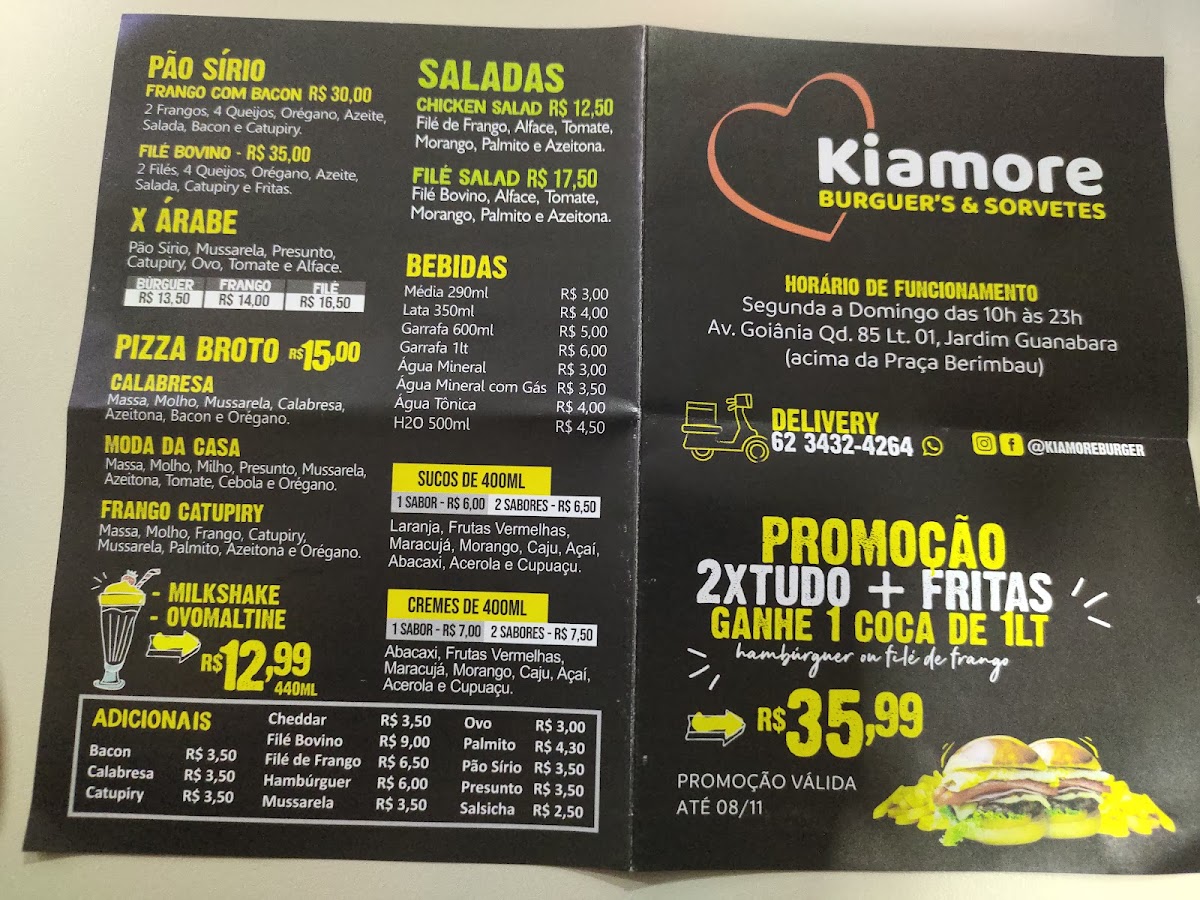 Welcome to Kiamore Burger's e Sorvetes, a delightful culinary gem nestled in the heart of Jardim Guanabara, Goiânia, Brazil. Located at Avenida Goiânia, N°1391, this vibrant eatery offers a tantalizing fusion of gourmet burgers and creamy, indulgent ice cream. As a food reviewer for Menu Buzz, I am excited to share the unique flavors and wonderful ambiance that Kiamore brings to the table.